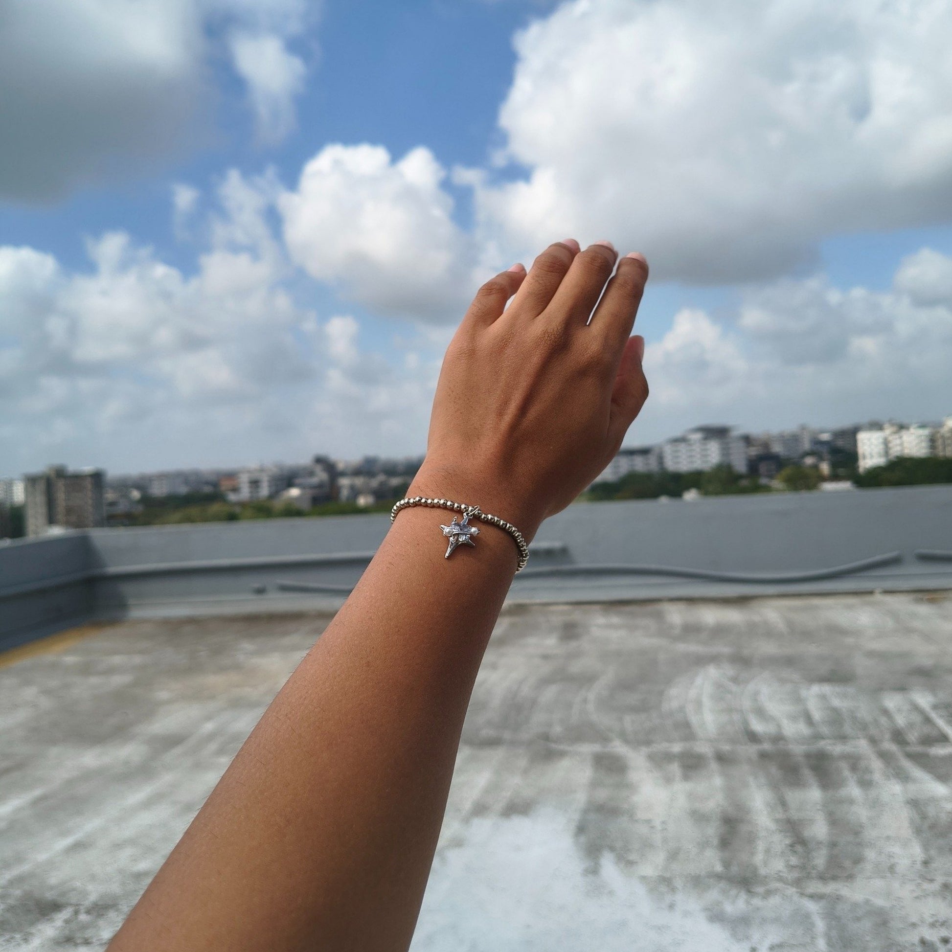 Elevate your everyday elegance with the Stellar Charm Silver Beaded Bracelet a timeless blend of simplicity and celestial charm. Crafted with finely polished silver beads, this bracelet features a delicate star charm that adds a touch of sparkle to your wrist. Perfect for any occasion, its minimalist design pairs beautifully with both casual and dressy outfits.